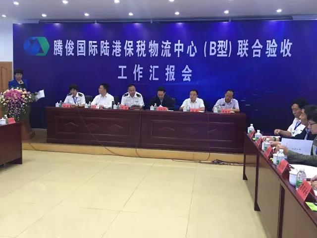 2017年6月30日,由昆明海關(guān)、財(cái)政部駐云南省財(cái)政監(jiān)察專員辦事處、云南省國(guó)家稅務(wù)局、國(guó)家外匯管理局云南省分局組成的聯(lián)合驗(yàn)收組,聽(tīng)取了騰俊國(guó)際陸港保稅物流中心建設(shè)情況匯報(bào),對(duì)中心基礎(chǔ)和監(jiān)管設(shè)施建設(shè)情況進(jìn)行逐項(xiàng)檢查,觀看有關(guān)設(shè)施功能演示,審閱相關(guān)文檔資料,經(jīng)綜合評(píng)審,宣布中心通過(guò)聯(lián)合驗(yàn)收。