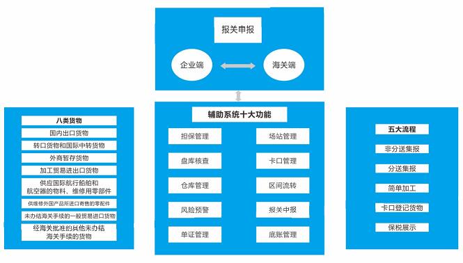 航通智能保稅物流中心輔助監(jiān)管系統(tǒng)是以實(shí)現(xiàn)貨物快速有序地流轉(zhuǎn)、高效運(yùn)作、有效監(jiān)管為目的的應(yīng)用輔助管理系統(tǒng)。該系統(tǒng)以保稅物流中物流賬冊(cè)為核心,以進(jìn)出保稅物流中心的貨物物流為主線,滿足保稅倉儲(chǔ)、轉(zhuǎn)口貿(mào)易、國際中轉(zhuǎn)、國際采購、分撥和配送,以及流通性簡(jiǎn)單加工和增值服務(wù)等業(yè)務(wù)。